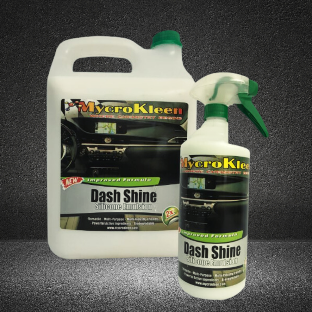 Dash Shine is a white liquid silicone-based emulsion. Shines dash and automotive trimmings. It will not attract dust and has a pleasant fragrance with a non-sticky application.